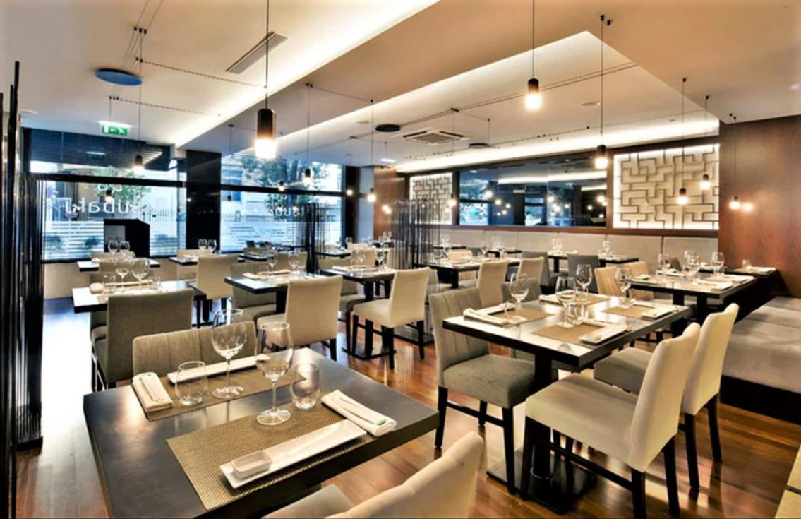 Tsubaki is a refined Japanese restaurant interior that blends contemporary elegance with minimalist design. The space is defined by a warm palette of dark wood, soft neutrals, and ambient pendant lighting that creates a calm, intimate dining atmosphere. Clean-lined furnishings and geometric wall patterns provide structure and sophistication, while subtle brand integration behind the sushi counter reinforces the restaurant’s identity. The overall design balances tradition and modernity, offering a serene yet stylish experience for guests.